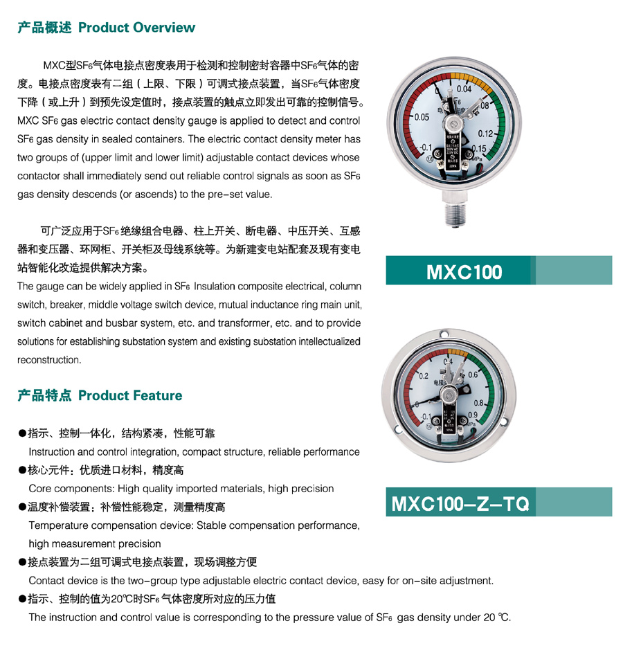 - MXC型SF6气体电接点密度表